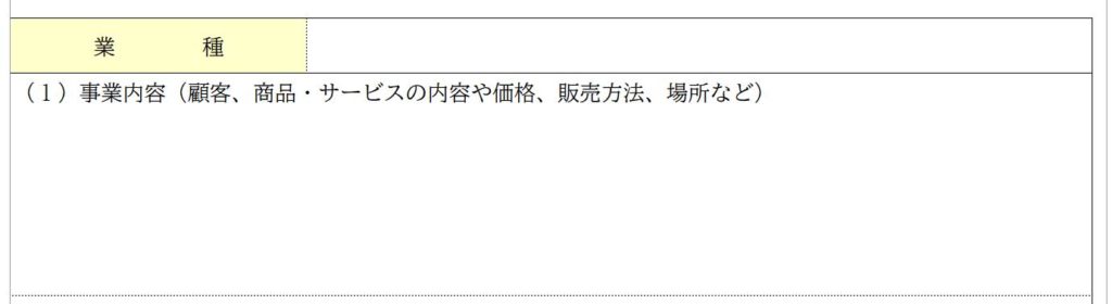 このテンプレートでは、業種や事業内容の記入欄は以下のようになっています。