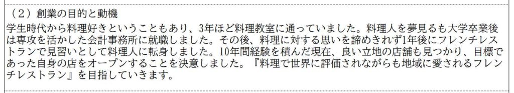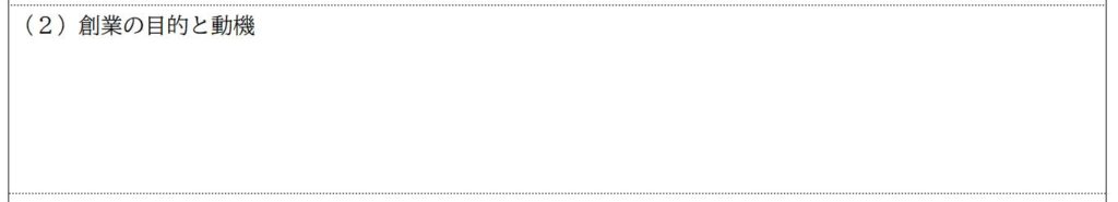 このテンプレートでは、創業の目的と動機の記入欄は以下のようになっています。